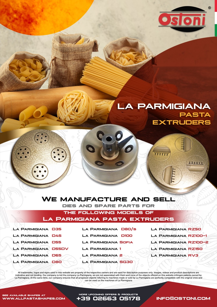 We are able to supply moulds, dies, accessories and spare parts for any model of La Parmigiana pasta machines. Buy directly from the machine shop and save money !